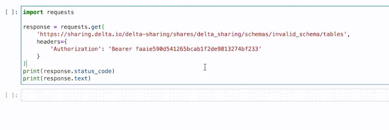 New in this release are improved error messages from the sharing server’s TableManager, as well. In prior releases, if a Table, Share, or Schema was not located by the sharing server, a less descriptive message was returned, like: schema 'invalid_schema' not found.